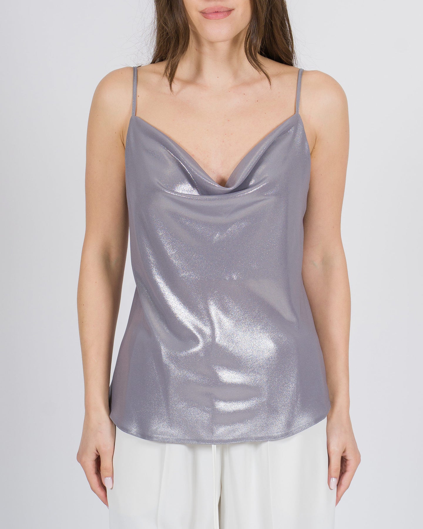 Elegante e contemporaneo, il Top a spalline in tessuto spalmato argento è il capo perfetto per look serali e occasioni speciali. Il materiale spalmato dona luminosità e un effetto metallizzato sofisticato, mentre il taglio a spalline valorizza spalle e décolleté con charme discreto.Perfetto da abbinare a pantaloni sartoriali, gonne midi o completi coordinati, crea outfit femminili, glamour e di grande impatto. Realizzato in tessuto di alta qualità, offre comfort e vestibilità impeccabile, ideale per chi cerca uno stile contemporaneo con un tocco luxury.