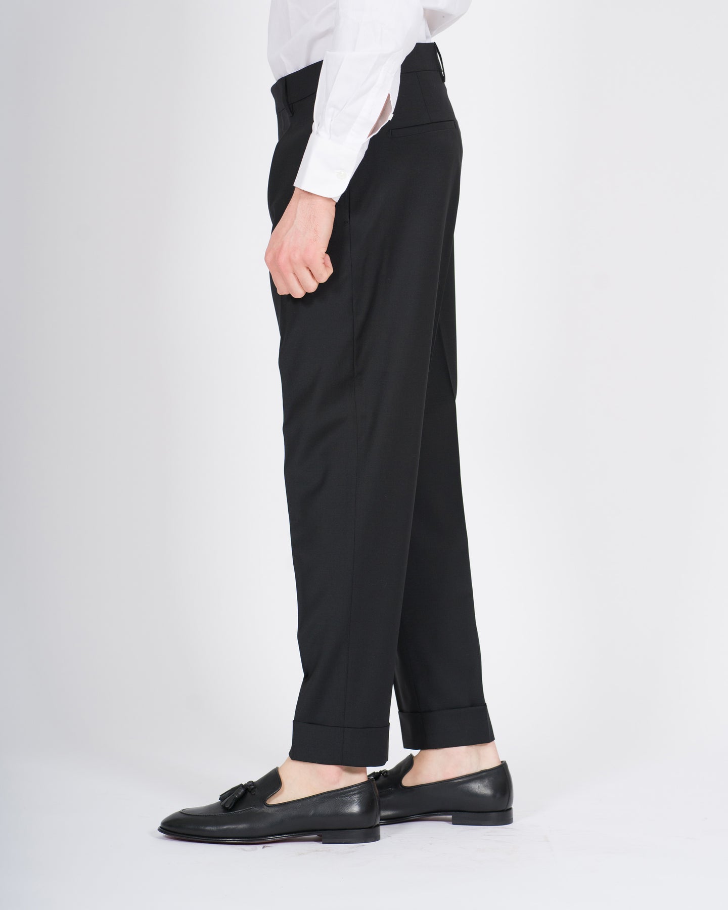 Il pantalone modello Chiaia Berwich fa parte della collezione Primavera Estate ed è pensato per l'uomo e la donna di Carillo Nola, interpretando uno stile sartoriale raffinato e contemporaneo. Un capo che unisce ricerca dei materiali, cura costruttiva e un'estetica senza tempo.Realizzato in tessuto composto da 52% lana, 46% poliviscosa e 2% elastan, nella raffinata tonalità nero, offre un perfetto equilibrio tra comfort, traspirabilità e morbidezza, risultando ideale per la stagione Primavera Estate. La combinazione dei materiali garantisce leggerezza, fluidità e una vestibilità confortevole, mantenendo un aspetto sartoriale curato ed elegante.Il modello è caratterizzato da pence frontali, che definiscono la silhouette, e da risvolto sul fondo, dettaglio iconico della tradizione sartoriale italiana e tratto distintivo del modello Chiaia.Un capo essenziale e distintivo, perfetto per accompagnare look eleganti e casual sofisticati durante la stagione Primavera Estate, espressione autentica dell'identità Berwich e dell'eccellenza del made in Italy.