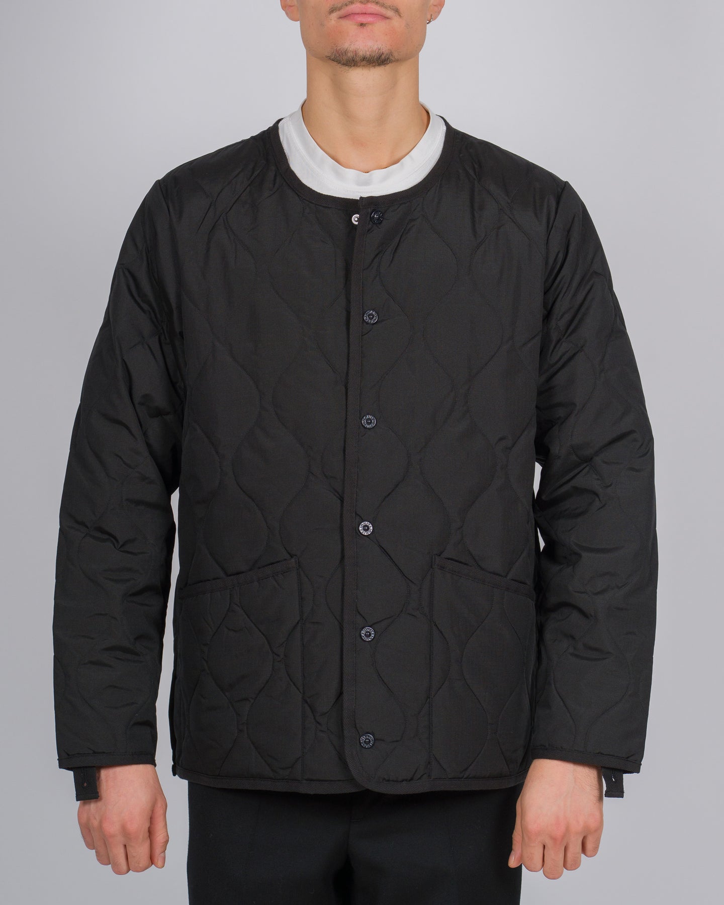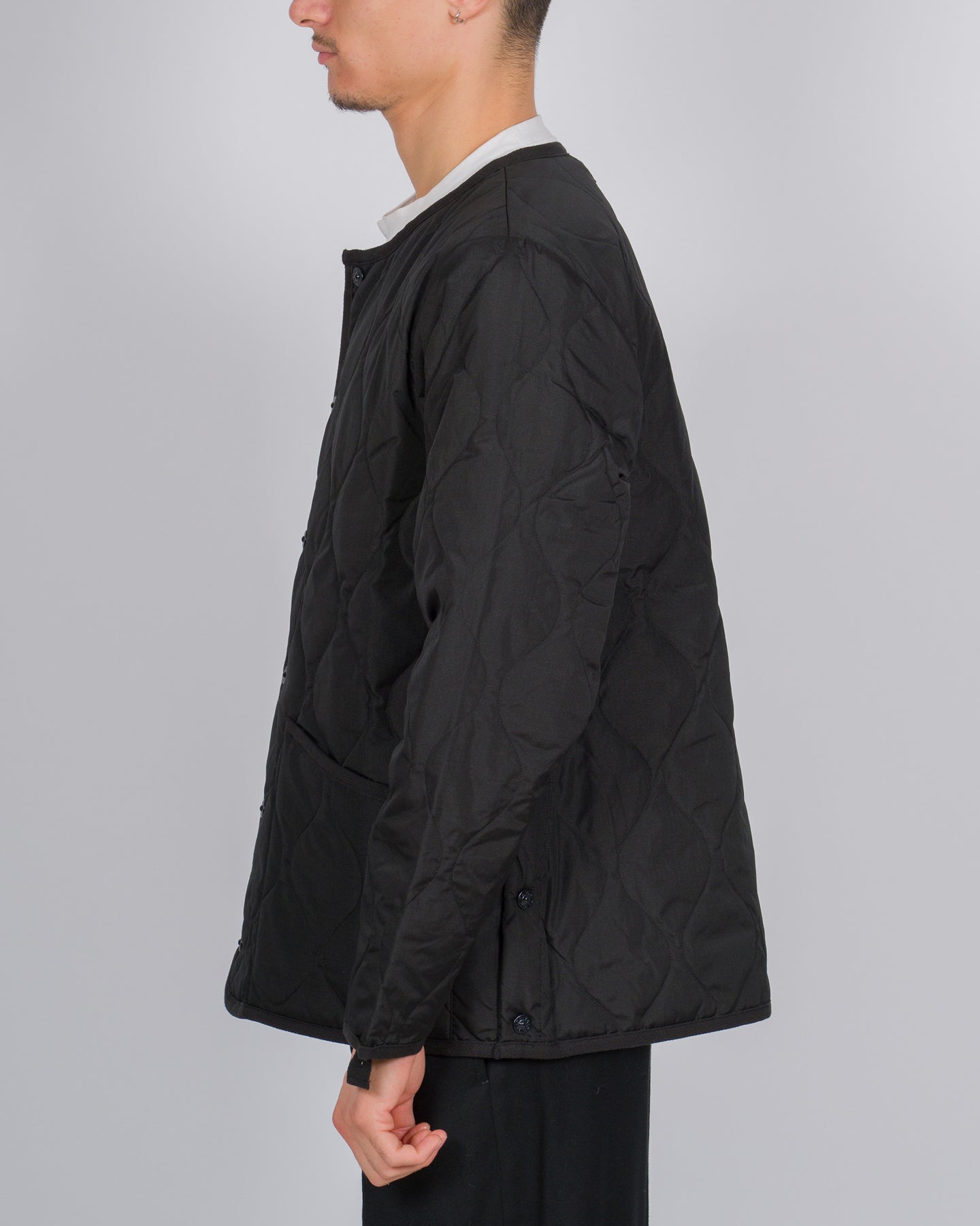 Minimalismo funzionale e design contemporaneo si incontrano in questo giubbotto trapuntato firmato TAION. Realizzato in Corea del Sud, il modello presenta un taglio ampio e una costruzione leggera ma calda, perfetta per la mezza stagione.Il design senza collo e la chiusura a pressione donano un'estetica pulita e versatile, mentre i tasconi frontali aggiungono un tocco utilitario. Un capo che combina comfort, linee essenziali e carattere urbano.