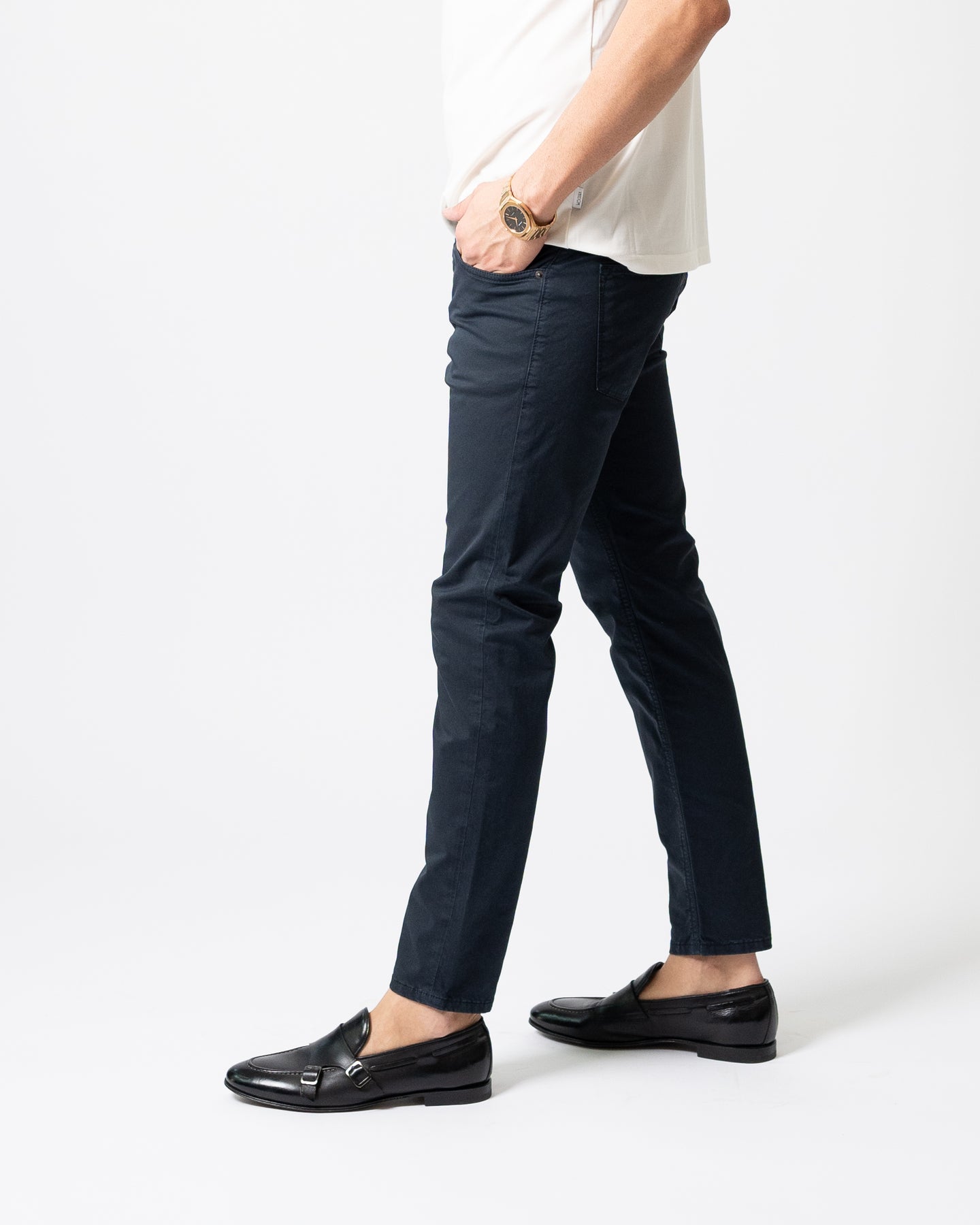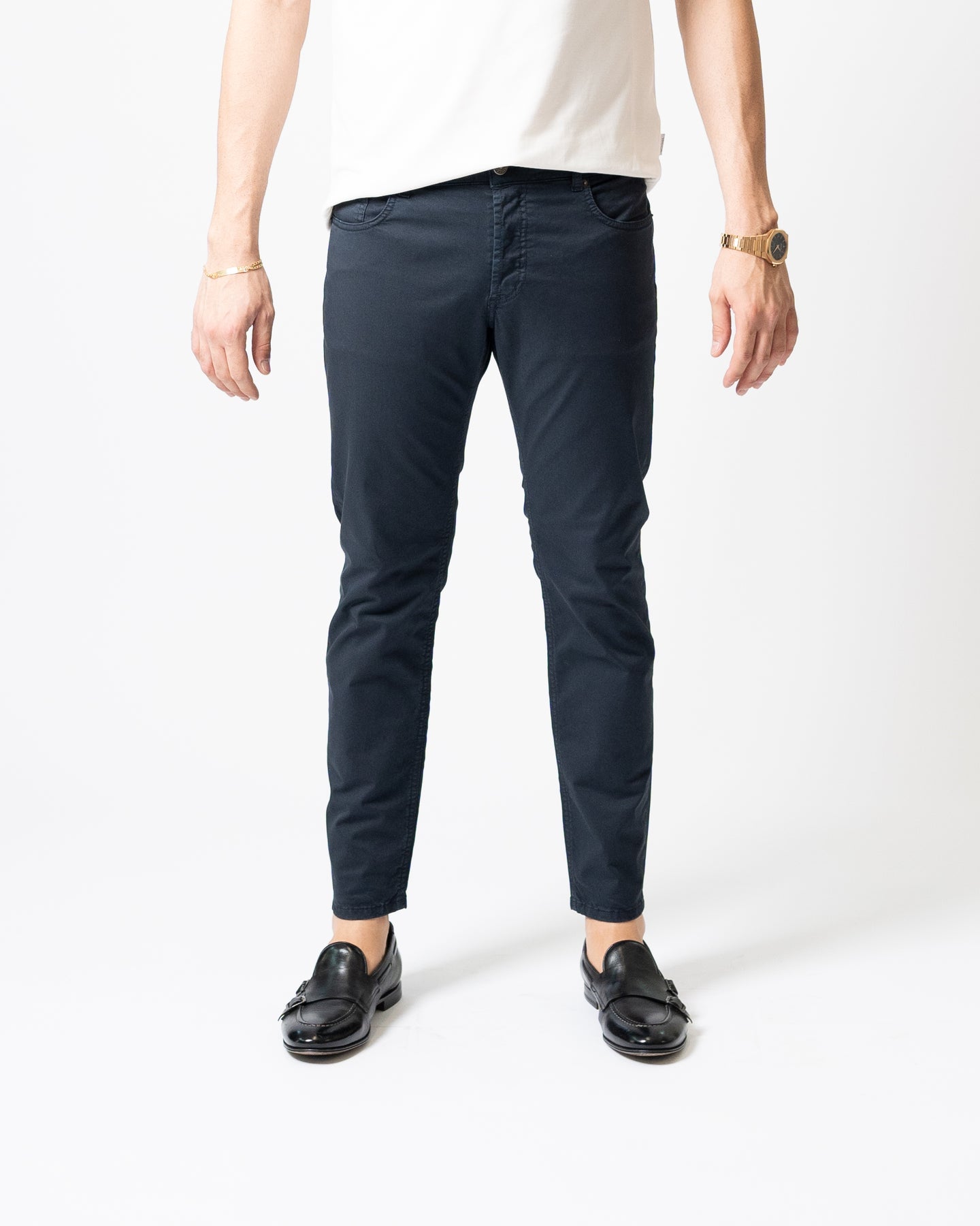 Pantalone modello miami vestibilità capri in tessuto cotone colore blu.