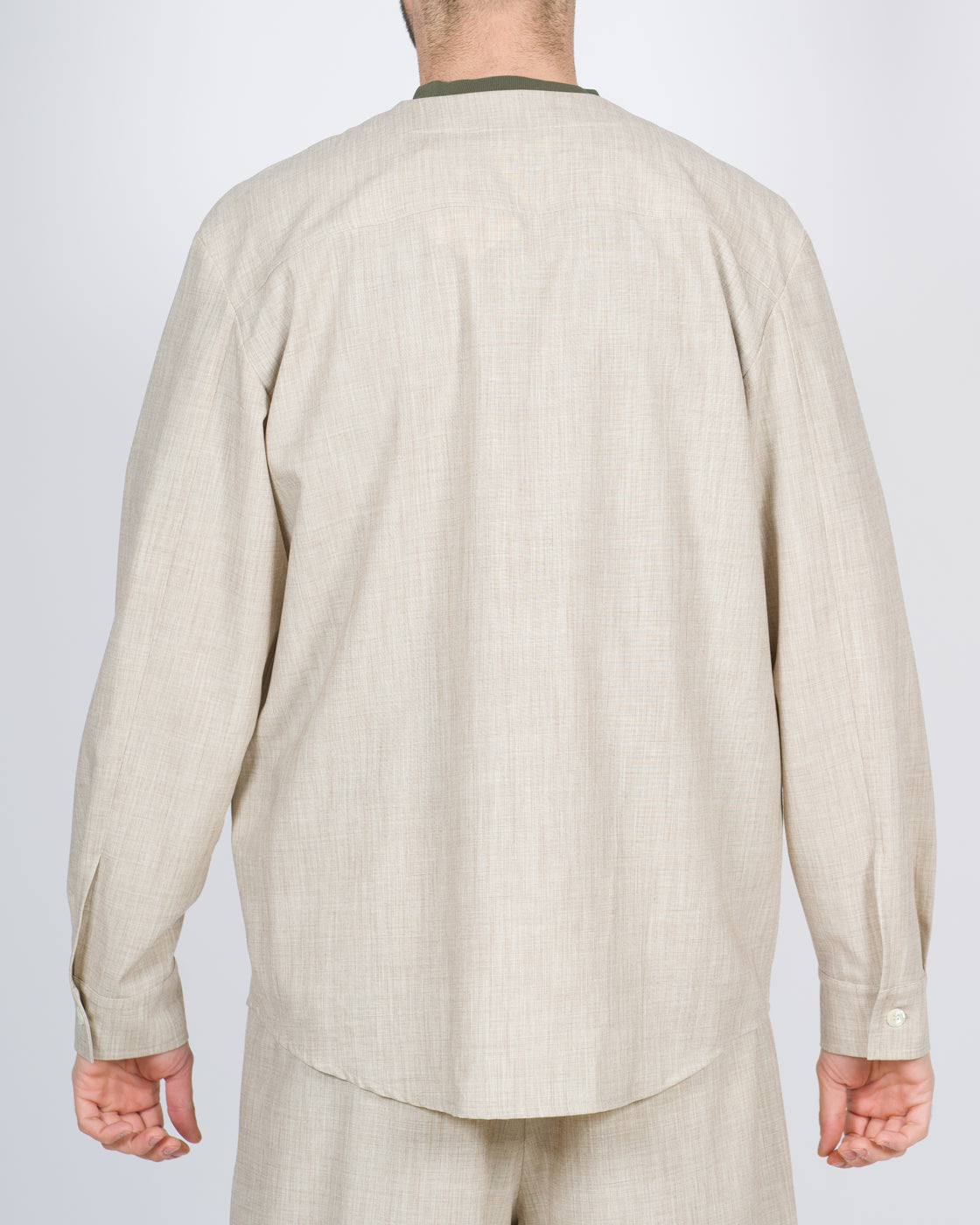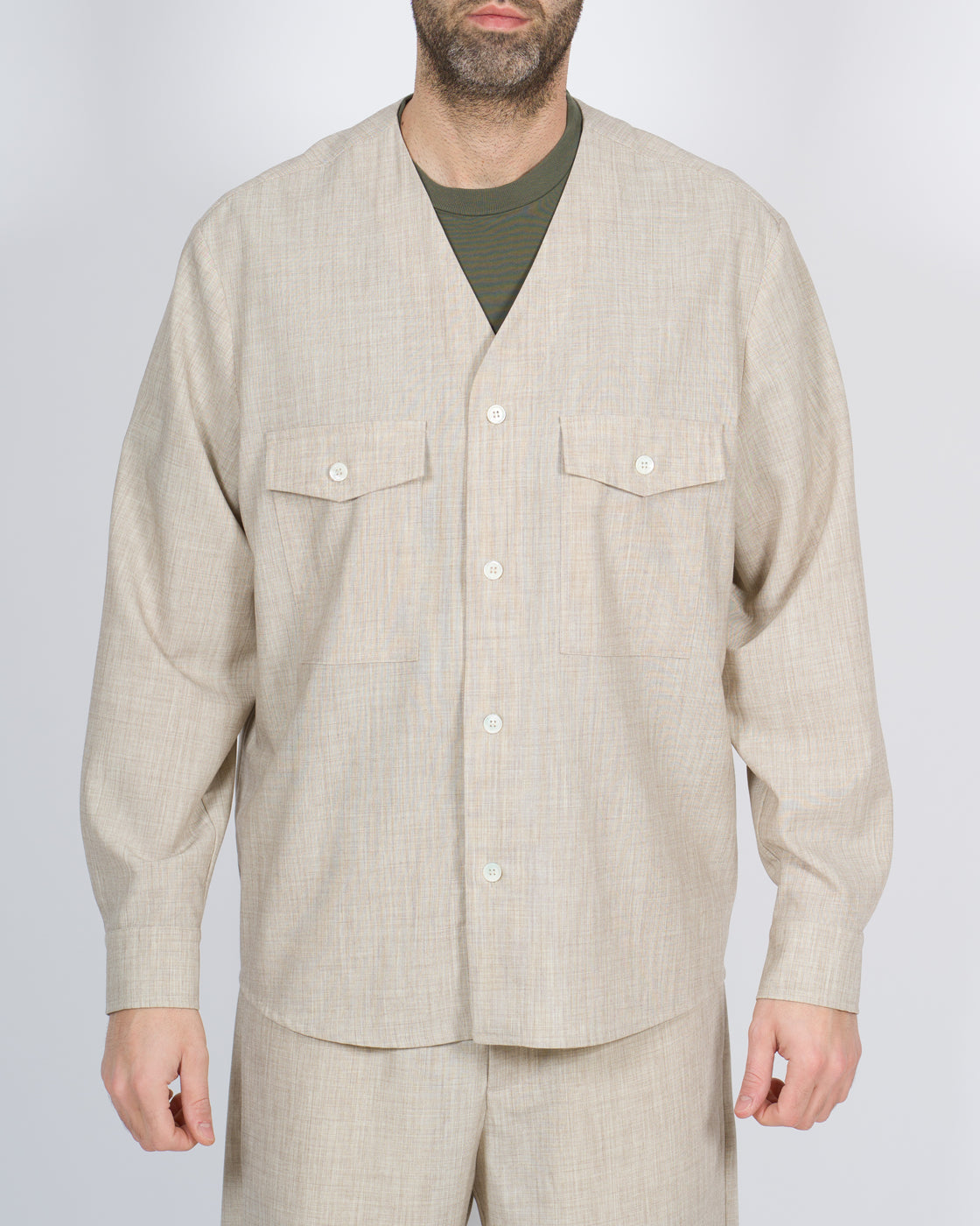 Camicia over manica lunga con chiusura bottoni, tasconi sul petto e bottoni sui polsini.Possibile abbinare con pantalone dello stesso tessuto per completare look.Il modello è alto 1,90 e indossa la taglia 50.