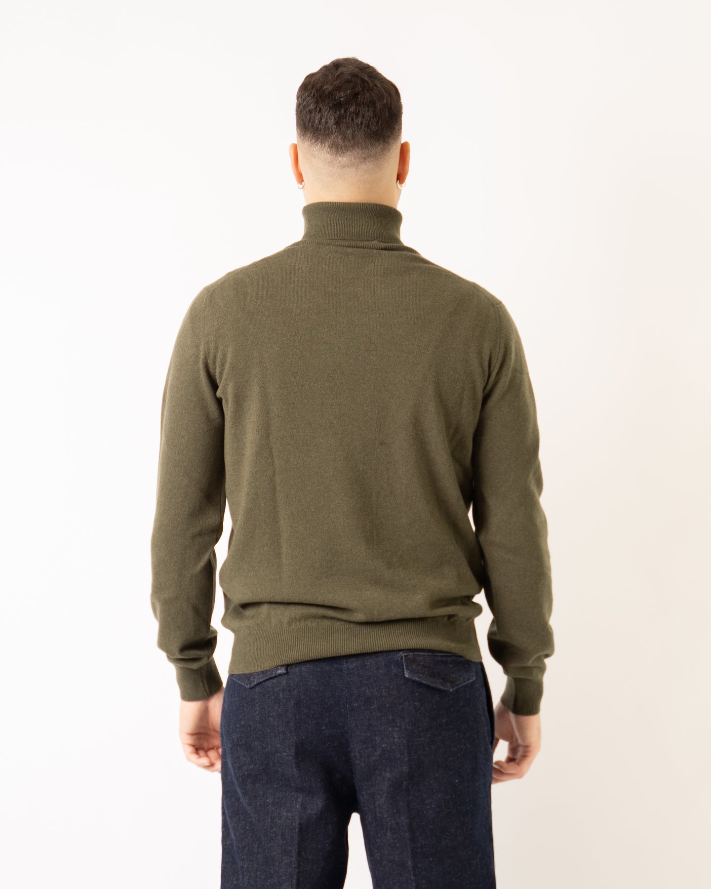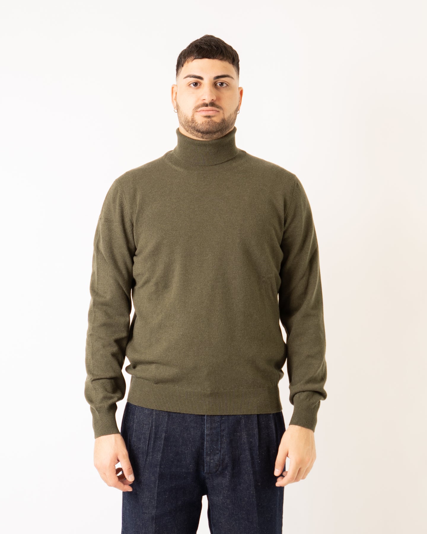 Maglia collo alto in tessuto misto lana cashmere colore verde.