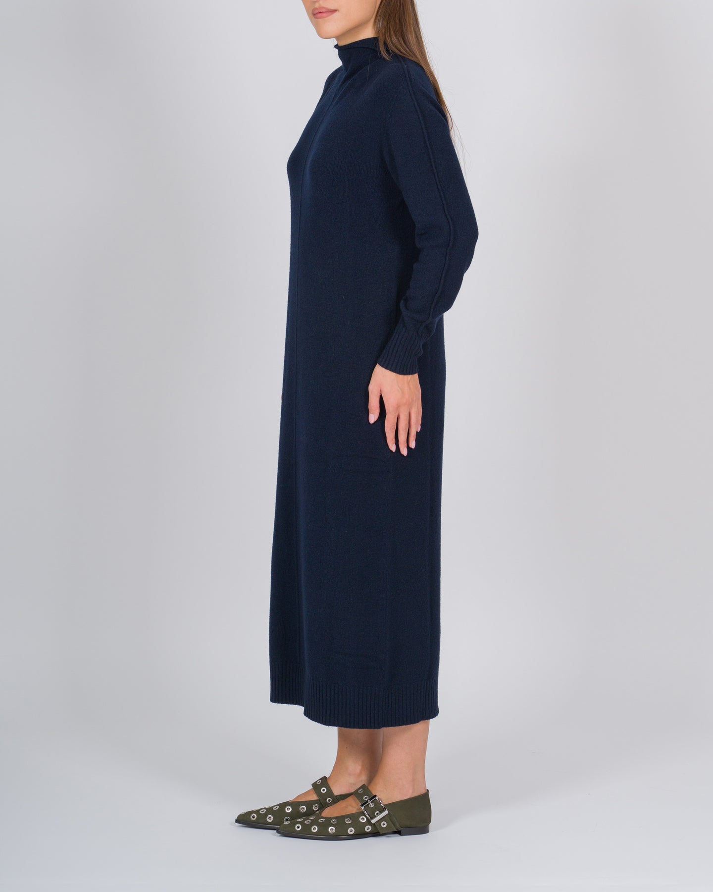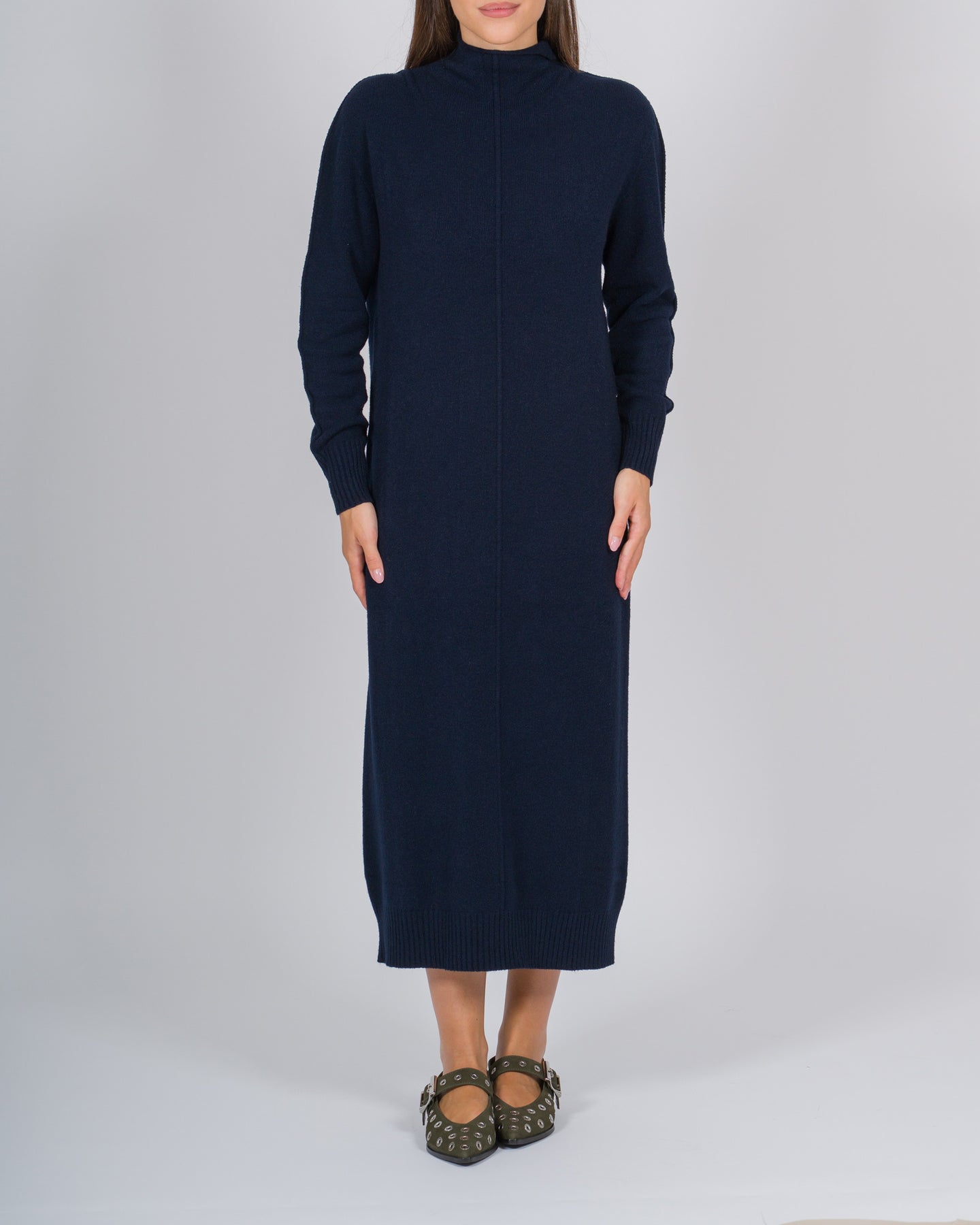 Minimal e sofisticato, questo abito in tessuto di viscosa effetto maglia unisce comfort e femminilità. La linea essenziale è arricchita dal collo lupetto e dalla riga centrale a contrasto che slancia la silhouette. Perfetto sia per il giorno con anfibi o sneakers, sia per la sera con stivali o tacchi.Dettagli:Tessuto: viscosa effetto magliaColore: bluCollo lupettoManiche lungheRiga centrale sul davantiVestibilità regolare