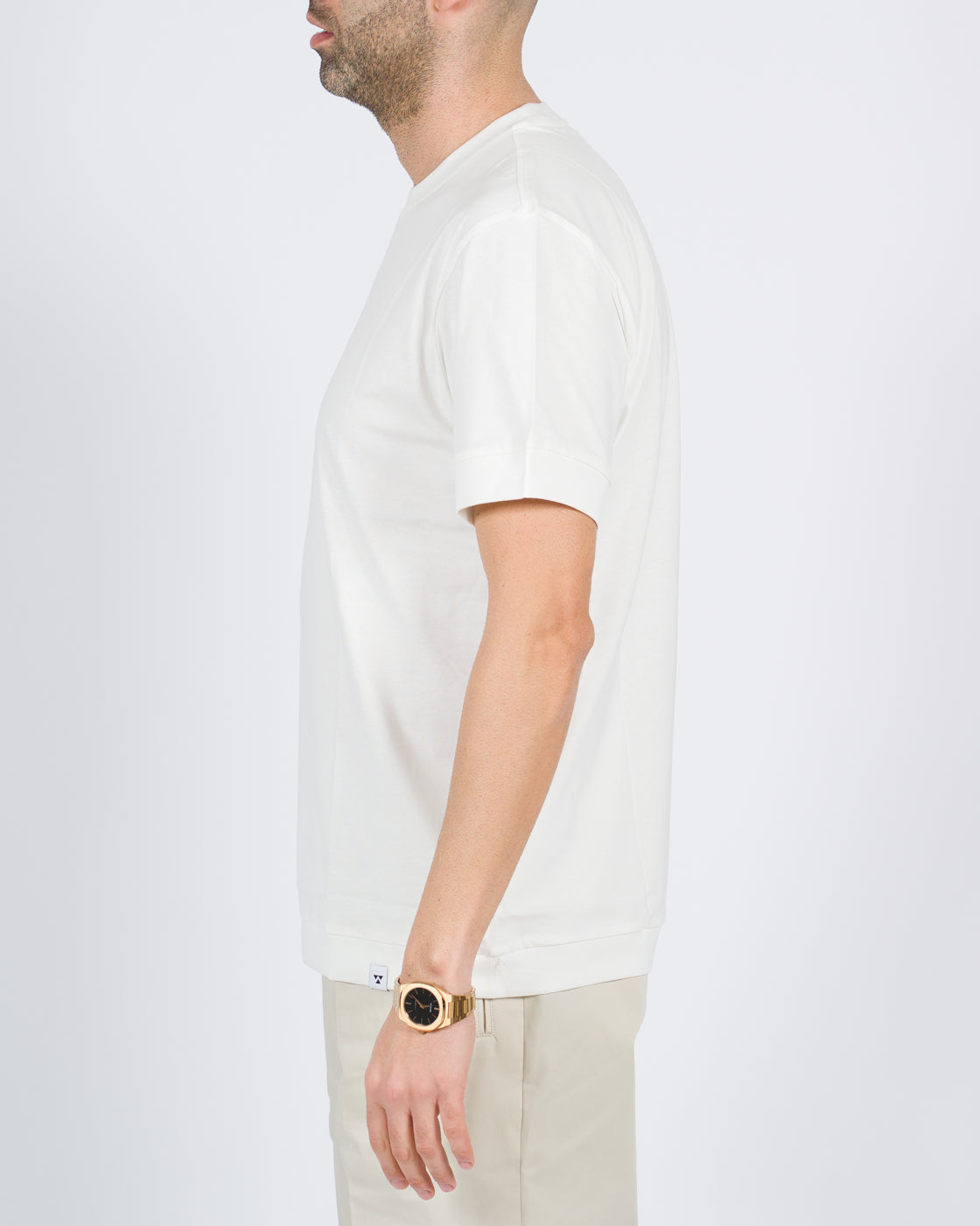 T-shirt mezza manica tessuto cotone con dettaglio bandierina logo sul fondo.