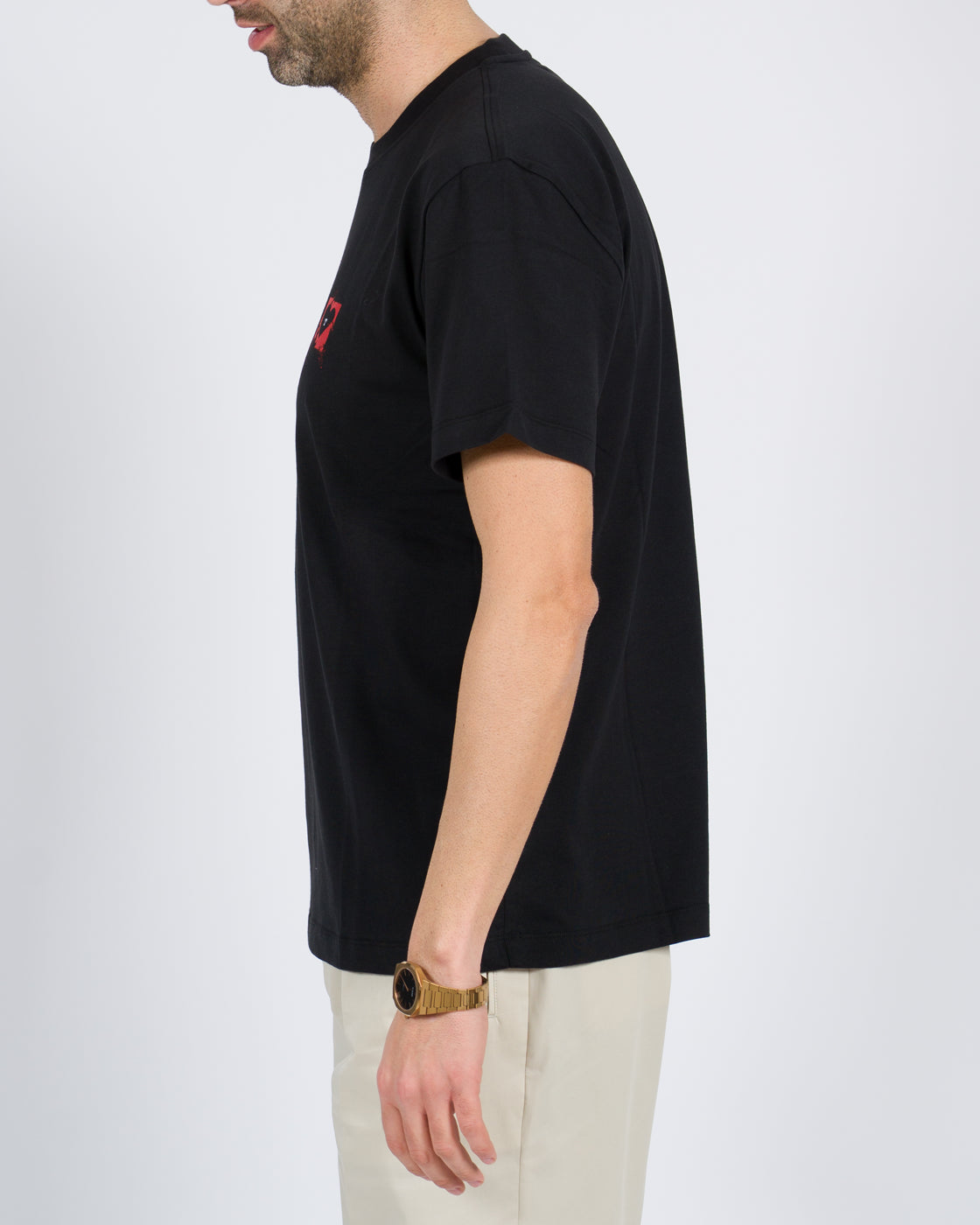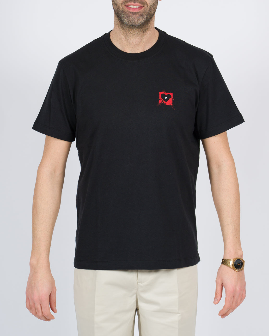 T-shirt mezza manica tessuto cotone con stampa cuore rosso.