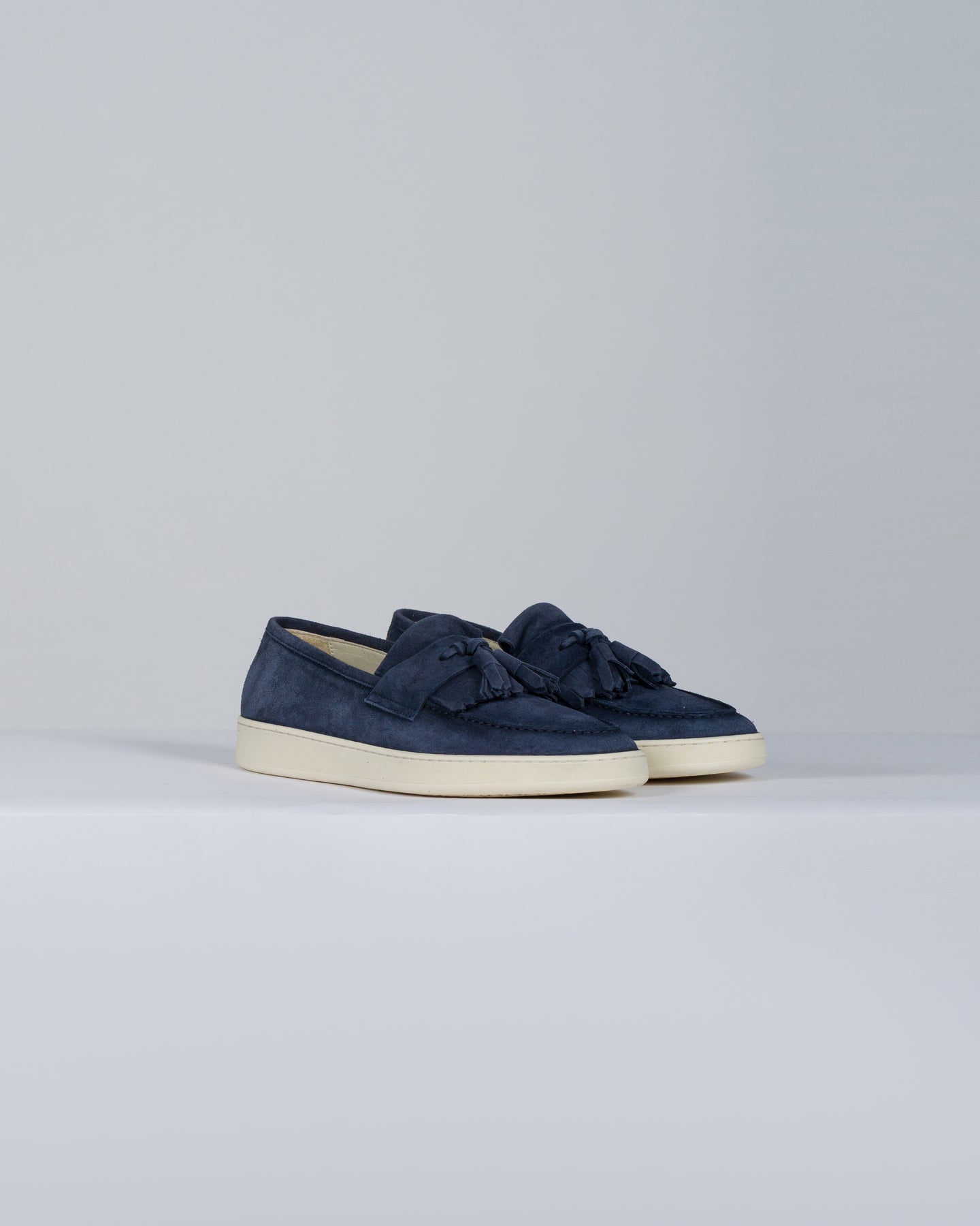 Mocassino in camoscio con nappine segue la linea innovativa realizzato con materiali che fanno la differenza e arricchiscono questo modello.