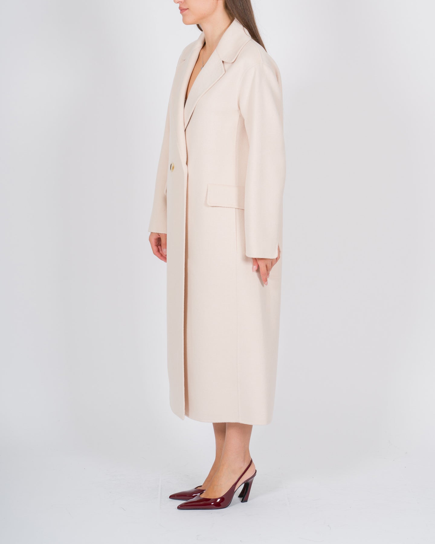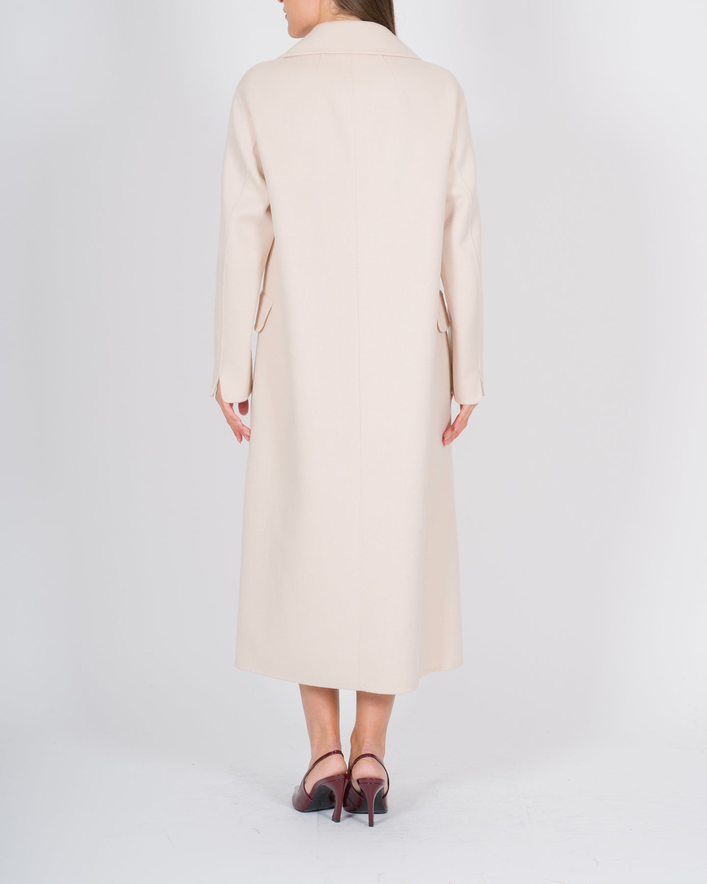 Il cappotto lungo doppiopetto di Silence Limited è un capo iconico che unisce eleganza e funzionalità, perfetto per affrontare la stagione con stile.Realizzato in panno di lana morbido e compatto, presenta una linea dritta e leggermente scivolata, che valorizza la figura con sobrietà.Il design è impreziosito da revers a specchio dal taglio sartoriale e da tasche con pattine frontali che sottolineano la costruzione pulita del capo.La chiusura doppiopetto con bottoni tono su tono aggiunge un tocco classico e sofisticato, mentre il colore panna ne amplifica la versatilità, rendendolo adatto a ogni occasione: dal quotidiano all'eleganza serale.Un cappotto essenziale, pensato per durare nel tempo, espressione del savoir-faire italiano che da sempre contraddistingue Silence Limited.