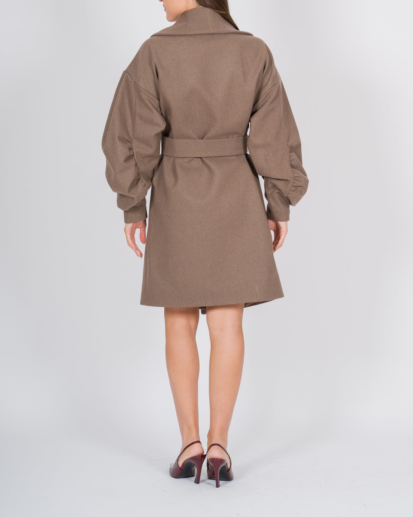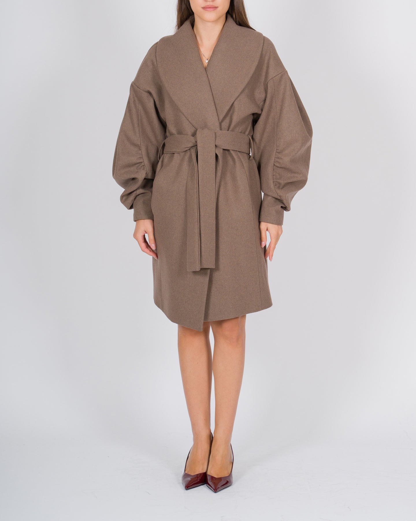 Il cappotto vestaglia in lana fango firmato Silence Limited rappresenta l'essenza della femminilità contemporanea: linee fluide, volumi ampi e comfort sofisticato.Realizzato in morbido panno di lana, avvolge la figura con una silhouette morbida e rilassata, sottolineata dalla cintura in vita che permette di modulare la vestibilità e definire la silhouette con naturalezza.Il collo scialle dona eleganza e armonia alle proporzioni, mentre il colore fango, caldo e neutro, esprime sobrietà e versatilità, perfetto per abbinarsi a qualsiasi tonalità della stagione.Un capo senza tempo, ideale per completare look quotidiani o più formali con la raffinata semplicità che contraddistingue il mondo Silence Limited.
