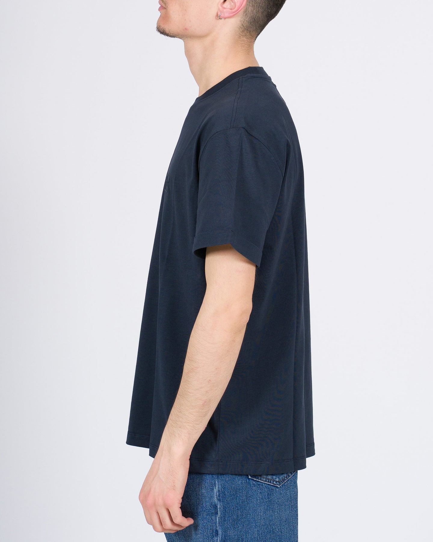 T-shirt modello Barcellona in cotone blu, mezza manica con risvolti sulle maniche e piccolo loghetto sul petto. Vestibilità comoda e design essenziale, ideale per un look casual moderno e facilmente abbinabile a pantaloni o jeans per outfit quotidiani contemporanei.