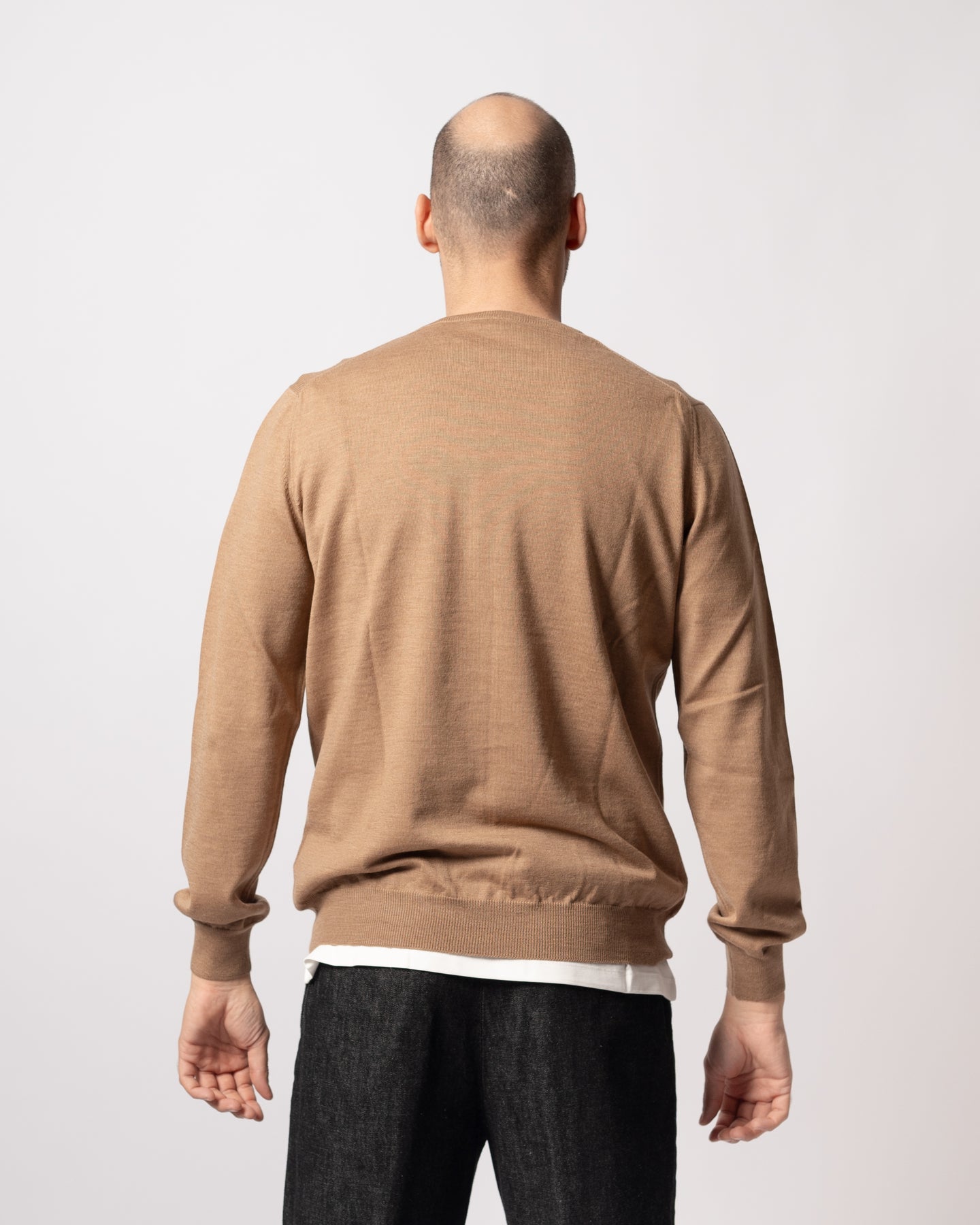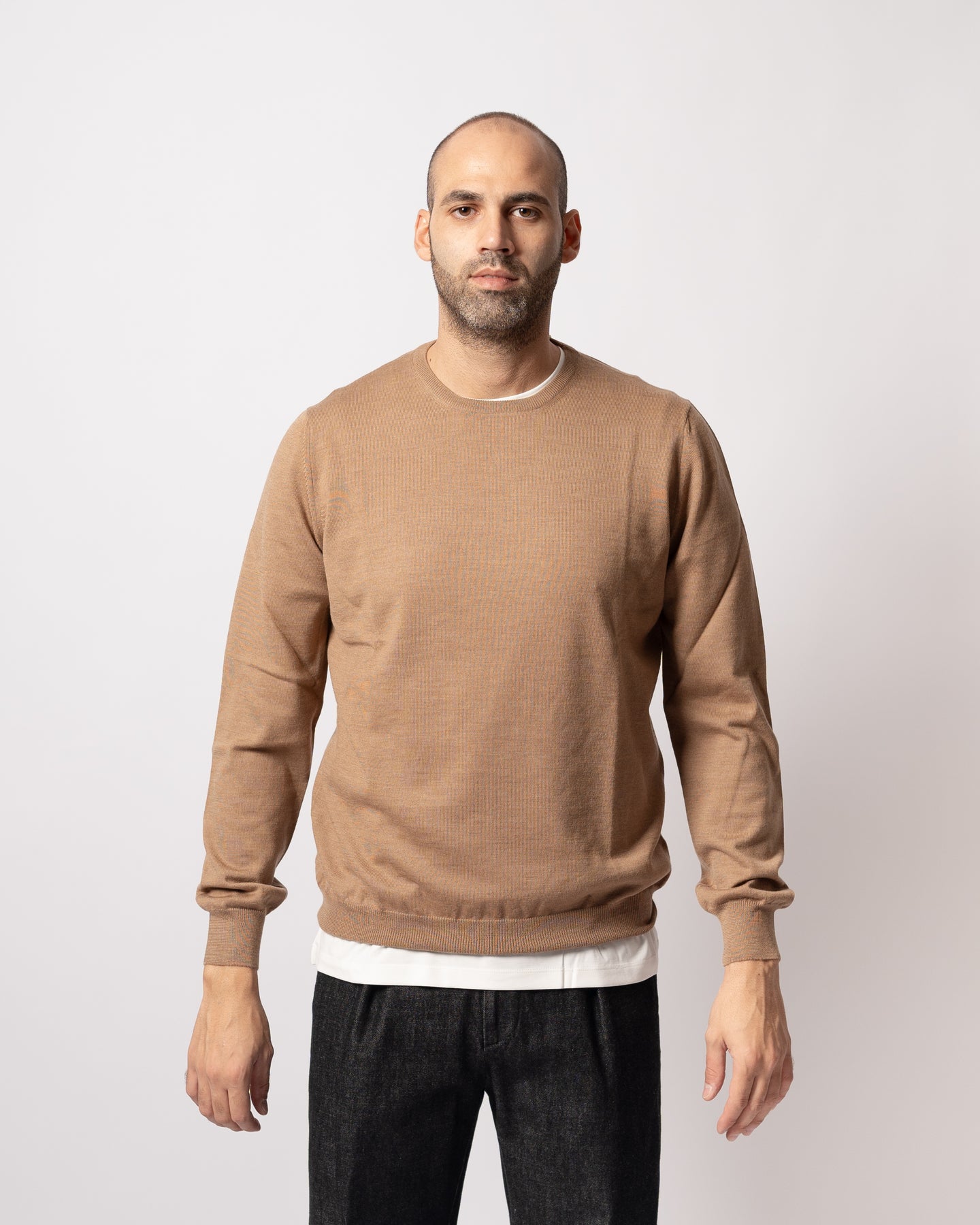Girocollo manica lunga in tessuto lana merinos.Il modello indossa la taglia 50