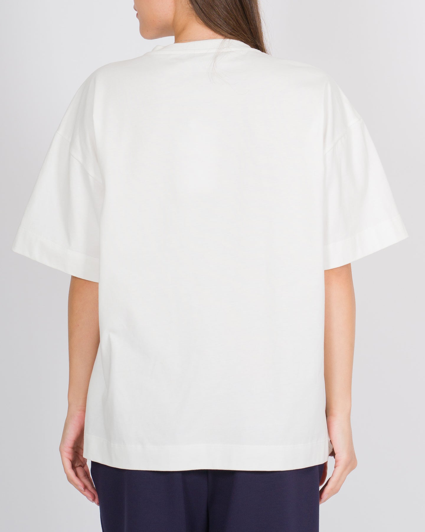 Un capo essenziale reinterpretato con un tocco sofisticato, questa T-shirt mezza manica in cotone bianco firmata Meimej unisce comfort e dettagli preziosi. Le applicazioni di perle lungo il tessuto donano luce e raffinatezza, trasformando una silhouette classica in un capo elegante e contemporaneo.Realizzata in cotone morbido e di alta qualità, la T-shirt garantisce vestibilità confortevole e versatilità, perfetta da indossare da sola o abbinata a blazer, gonne o pantaloni per look minimal ma ricercati.