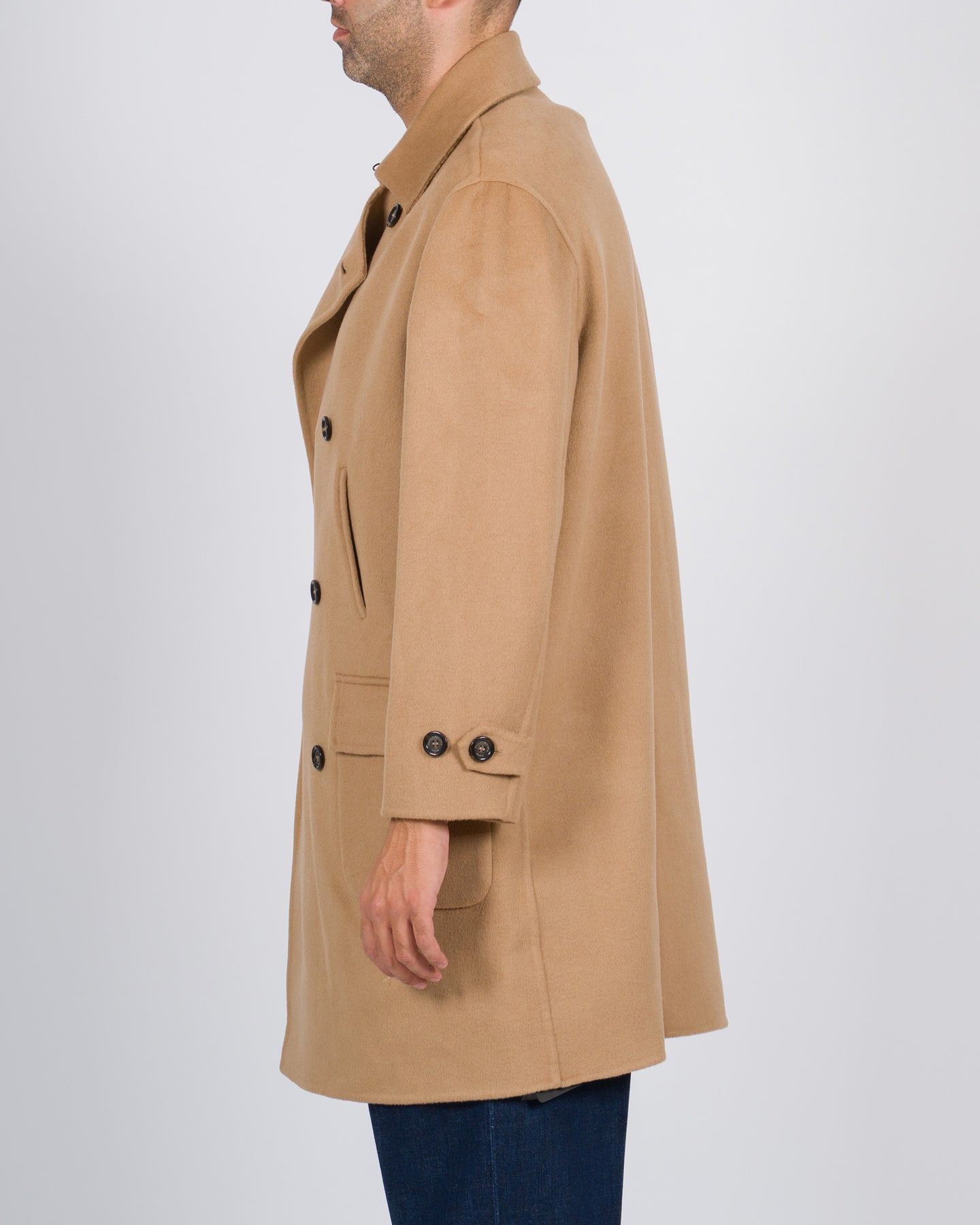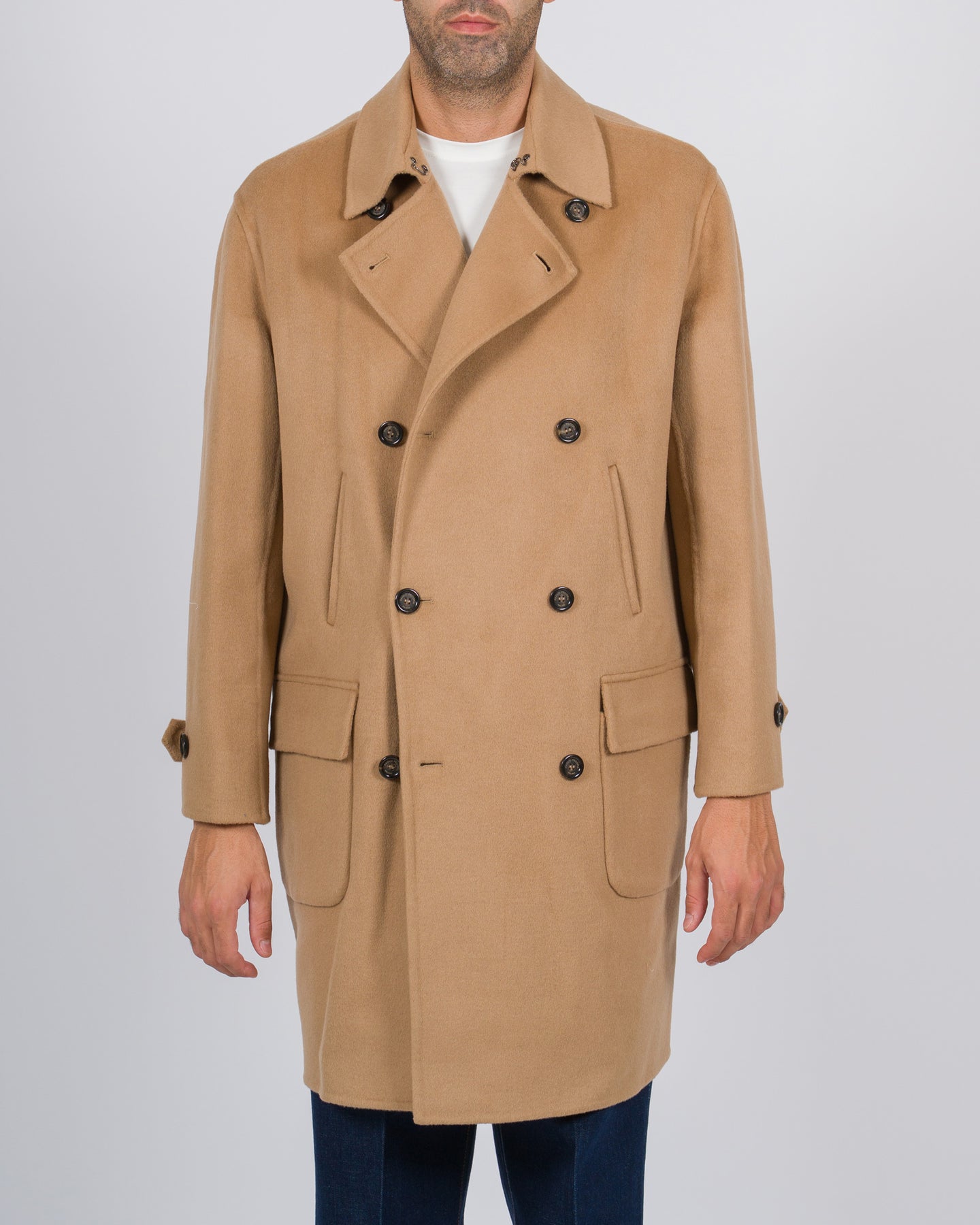 Un classico del guardaroba maschile reinterpretato con un tocco contemporaneo: la cappotta doppiopetto di Paolo Pecora è realizzata in lana color camel, un tessuto caldo e versatile che esalta il design senza tempo.Il modello presenta abbottonatura a sei bottoni, due tasche a filo e due tasche a toppa, che ne arricchiscono la funzionalità e lo stile. La vestibilità comoda dona al capo un carattere rilassato ma raffinato, perfetto sia per look formali che per outfit più casual.Un cappotto che incarna l'equilibrio tra sartorialità italiana e praticità quotidiana, ideale per affrontare la stagione fredda con eleganza.