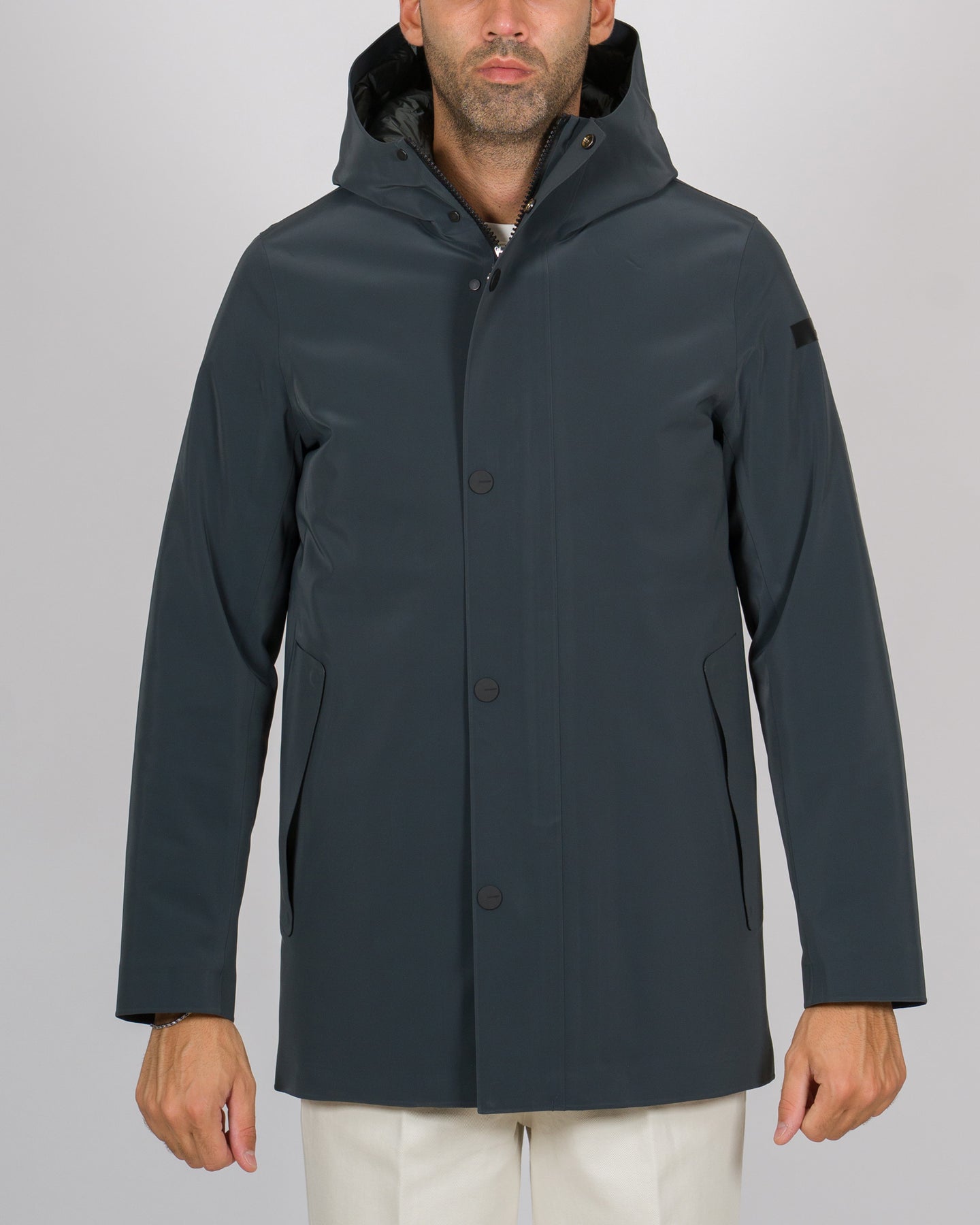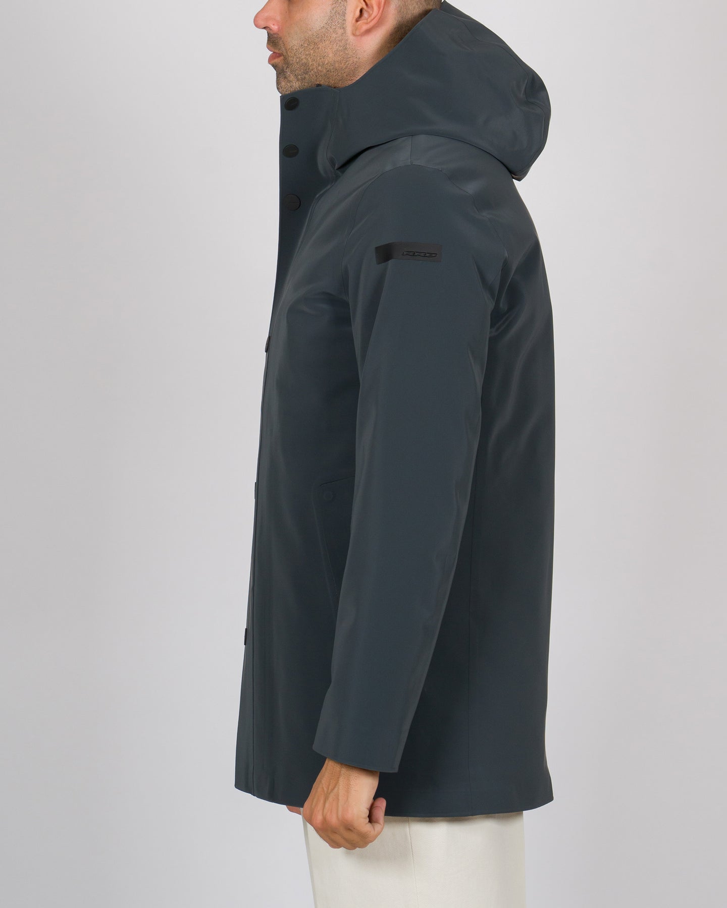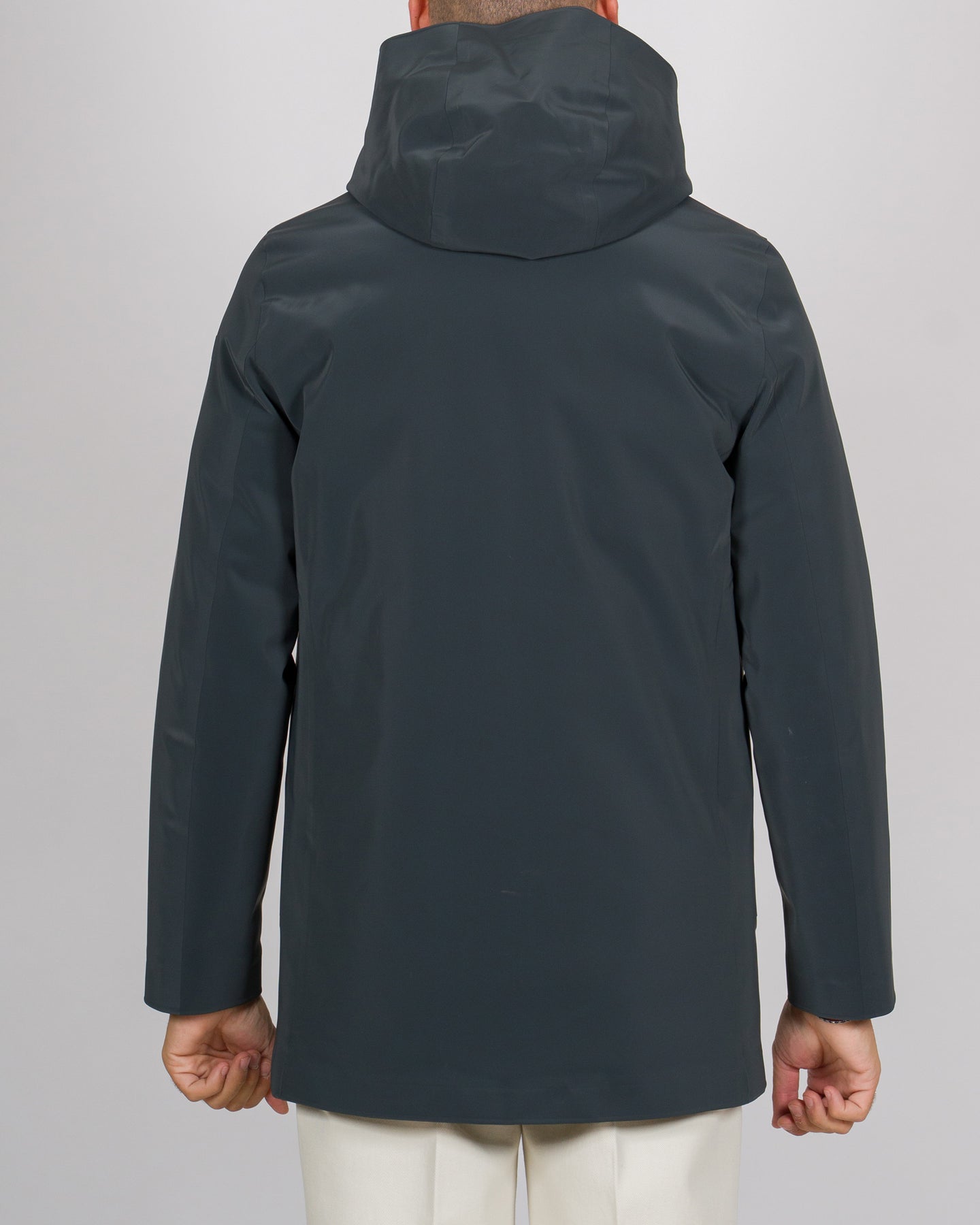 Questa reinterpretazione hi-tech del design parka rivela un capospalla invernale unico e sorprendente, per la sua raffinata costruzione e la curatissima scelta dei materiali. L'originale look cangiante del tessuto a membrana Stratofabric#3 è ottenuto grazie alla particolare spalmatura a silicone. Con la costruzione a taglio laser e incollaggio a caldo, il procedimento rende il parka impermeabile e a prova degli agenti atmosferici. La sua eleganza minimalista è sottolineata dal design essenziale, accentuato dalla patta a bottoni a pressione gommati che nasconde la zip metallica a doppio cursore. Questa sale a chiudere il cappuccio avvolgente imbottito, per un'efficace protezione dal vento e dalla pioggia. L'isolamento termico è assicurato dalla morbida imbottitura in piuma d'anatra 90/10, contenuta dai canali tubici totalmente privi di impunture. Il suo innovativo sistema Floating Shield presenta un'intercapedine che aumenta il comfort e consente una vestibilità diritta e impeccabile. L'interno è provvisto dal taschino chiuso dalla zip invisibile e ravvivato dal doppio filetto arancione fluo, accanto alla tag a cuore "Made with love, designed in Tuscany". Il logo a microiniezione nero sulla manica sinistra completa il parka con una nota iconica.