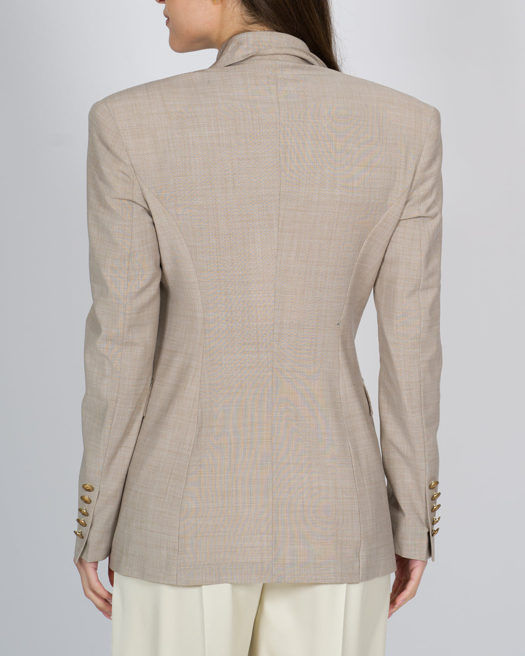 Giacca revers a lancia un solobottone oro e tasche a pattina.Tessuto misto lino.