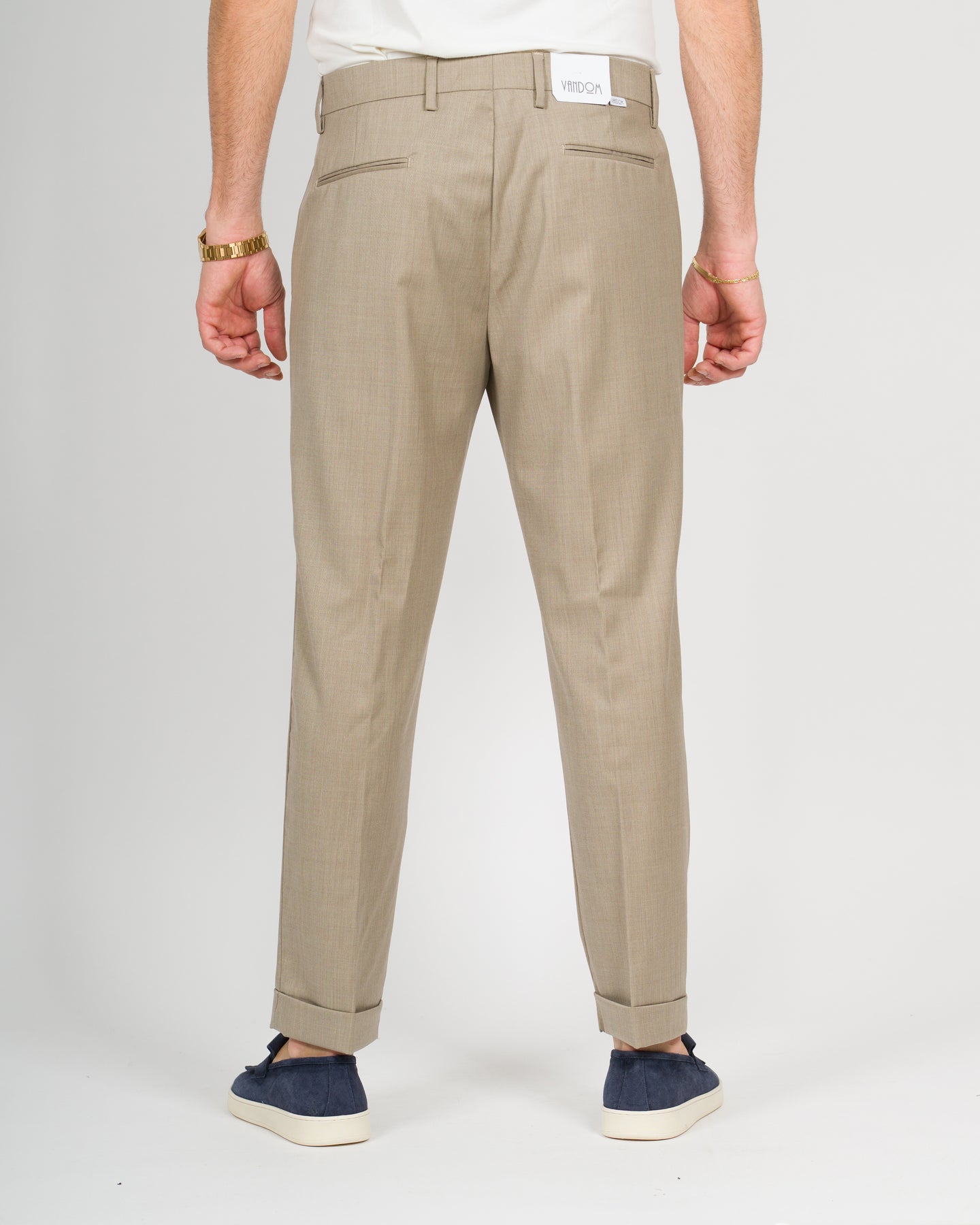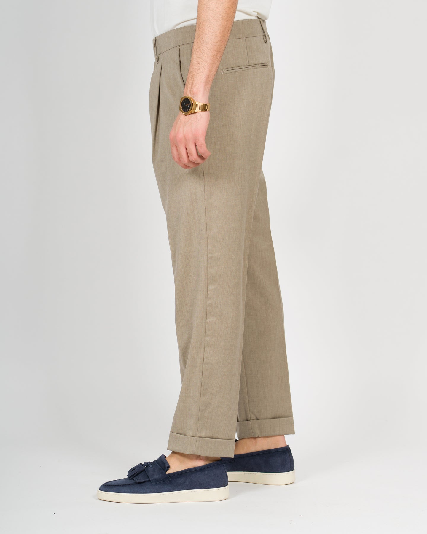 Pantalone in tessuto lana stretch con pence e risvolto al fondo.Il modello indossa la taglia 48