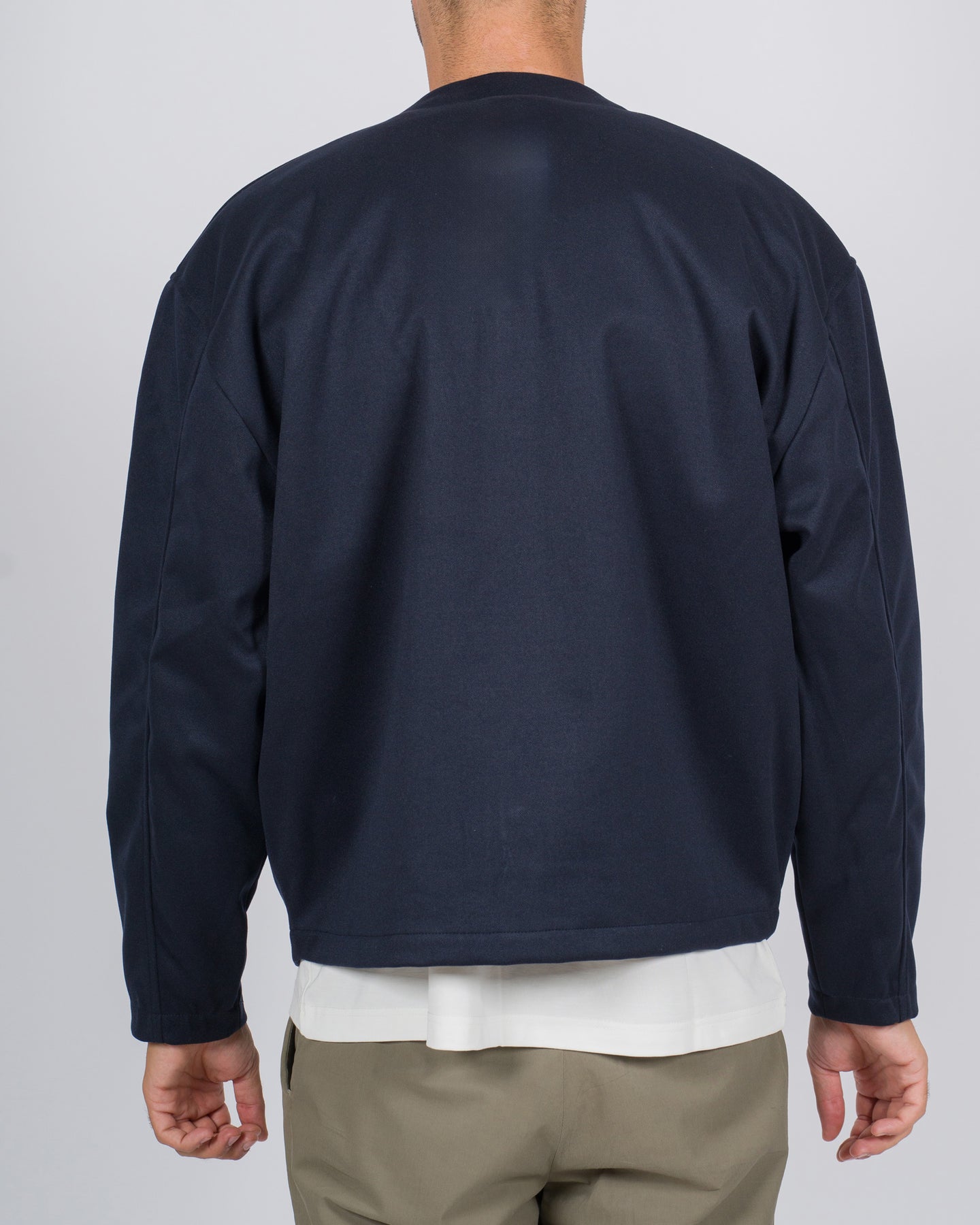 Un capo sofisticato e versatile, pensato per chi ama unire comfort e stile contemporaneo. Realizzato in panno di alta qualità, morbido e caldo, questo giubbotto blu è perfetto per la stagione autunnale e invernale.Design & Dettagli:-Vestibilità over che dona un'allure rilassata e moderna, ideale da sovrapporre a maglie e camicie.-Scollo a V, elegante e raffinato, che valorizza il décolleté e permette di abbinare facilmente sciarpe o collane.-Tasche frontali applicate, pratiche e discrete, perfette per completare il look senza sacrificare la pulizia della linea.-Chiusura frontale con bottoni tono su tono, sobria e funzionale, in armonia con la tonalità del blu.-Cuciture precise e dettagli sartoriali lungo le spalle, il fondo e i polsi, che sottolineano l'attenzione alla qualità artigianale.Vestibilità & Styling:-Fondo leggermente arrotondato o dritto, versatile per outfit sia casual che più curati.-Ideale da abbinare a pantaloni a sigaretta, jeans o gonne midi per un look contemporaneo e sofisticato.-La linea over e il colore blu intenso lo rendono un capo chiave del guardaroba, facile da combinare con capi basici o accessori più audaci.